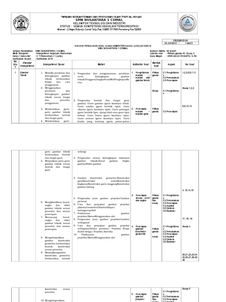 Contoh Soal Gambar Teknik Semester Genap : Contoh Soal Essay Teknik Dasar Otomotif Kelas 10 Beserta Jawabannya Soal Evaluasi - Pexel rpp (rencana pelaksanaan pembelajaran) mat…. Soal gambar teknik kelas x tkrguru pengampu : Gambar teknik kelas / program keahlian : Pembelajar yang sedang mengunjungi blog ini. Soal berupa 40 pilihan ganda dan 5 soal uraian atau esai. Artikel ini menyajikan latihan soal pts (penilaian tengah semester) beserta pembahasan soal untuk kelas 9 smp di semester genap tahun 2021.